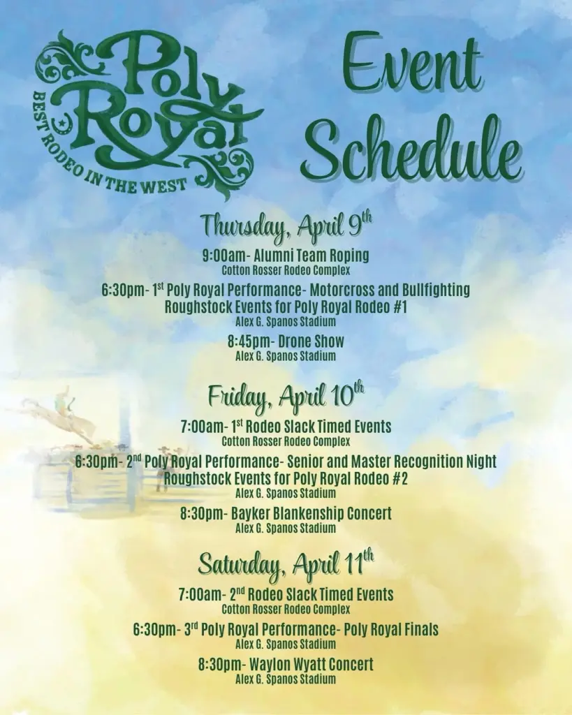 Please follow Cal Poly Rodeo on social media for more details.